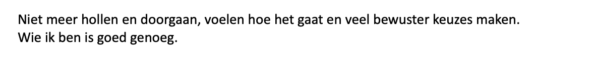 Nu merk je: de gangbare to do list, die “schop onder je kont” en “schouders eronder” zijn niet meer effectief voor de situatie waar je nu naar verlangt.
